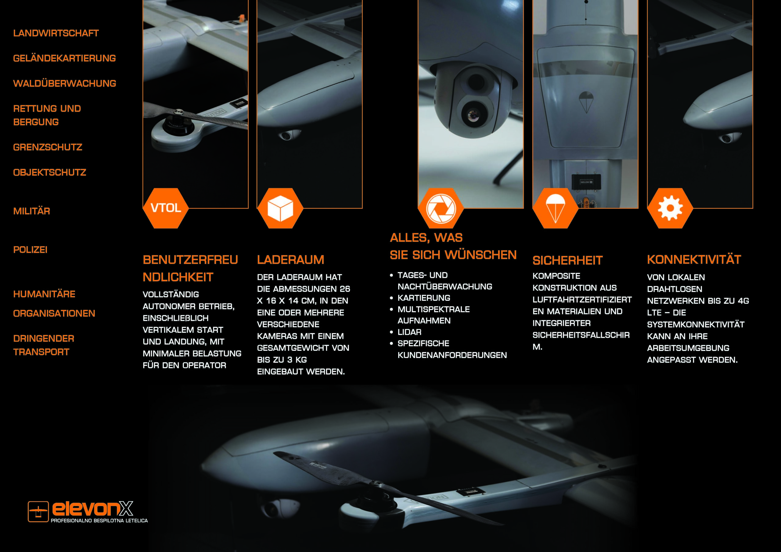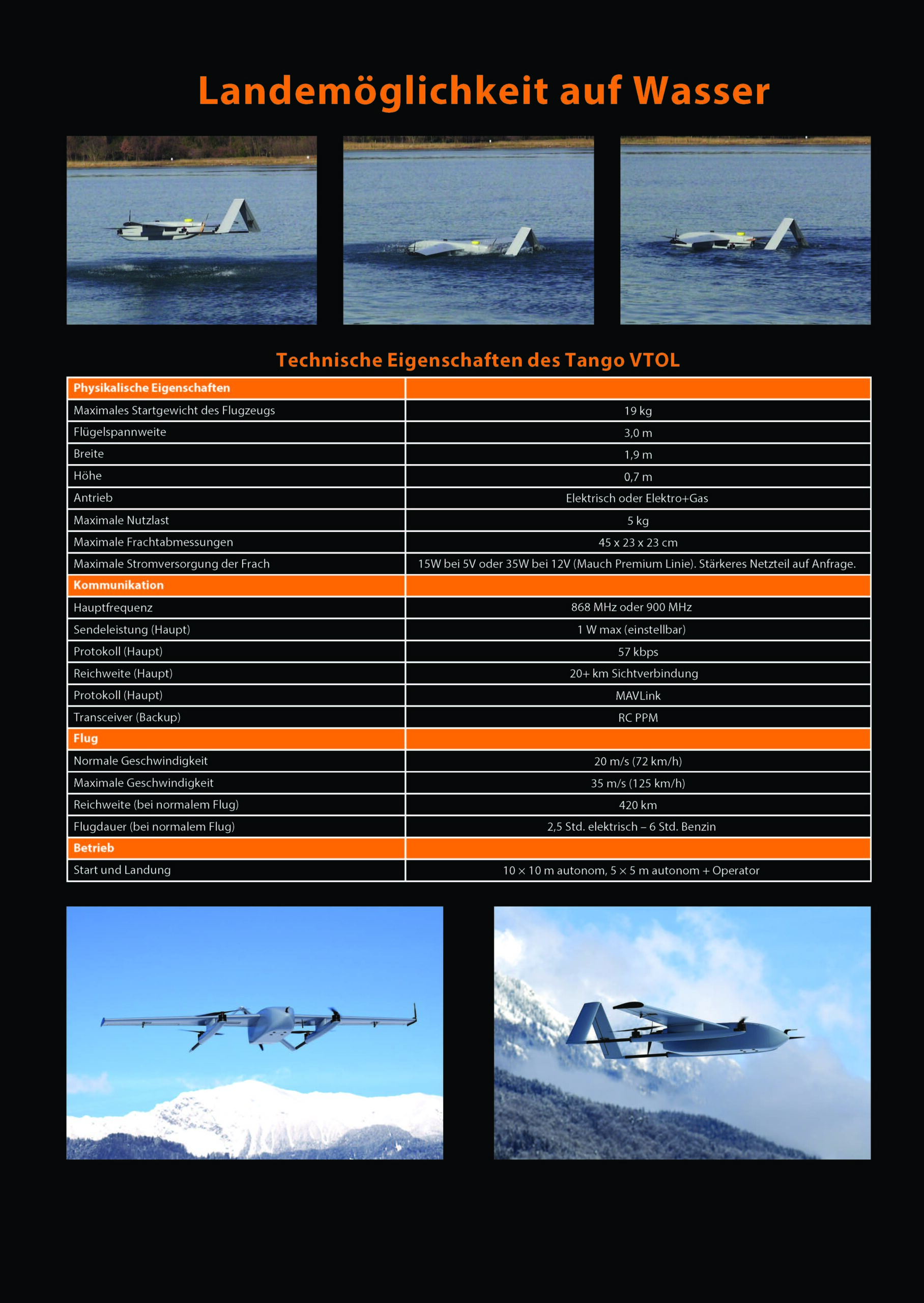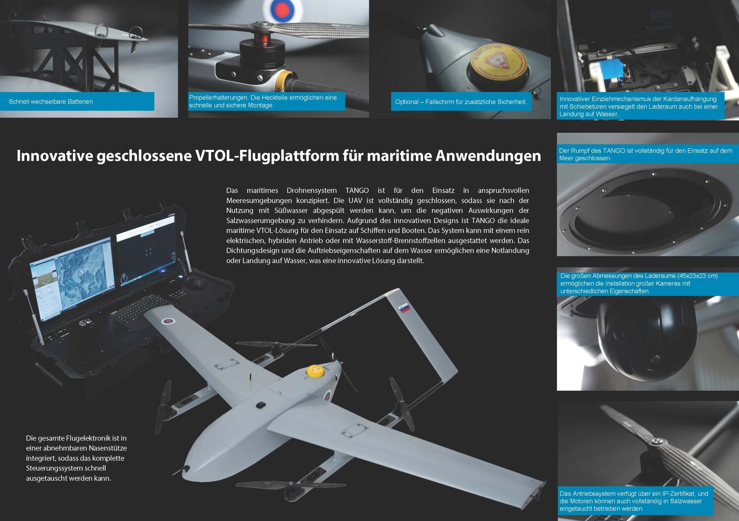 Vollständig autonomer Betrieb, einschließlich vertikalem Start und Landung, um die Belastung des Bedieners auf ein Minimum zu reduzieren.