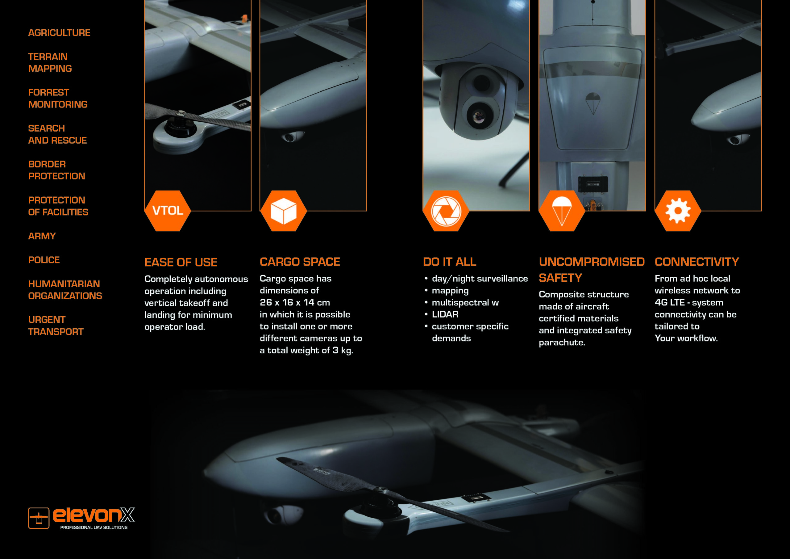 Полностью автономная работа, включая вертикальный взлет и посадку для минимальной нагрузки на оператора.
